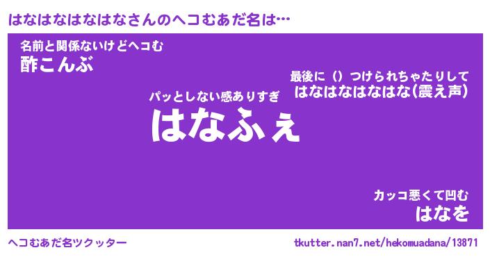 | 2回繰り返すあだ名 | 『はなはな』『ははなな』『うねうね』 |