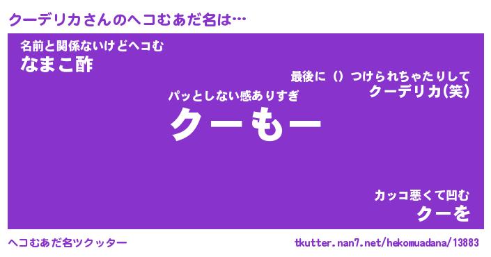 | ファンタジー風あだ名 | 『クーフェル』『エターナルクーデリカー』 |