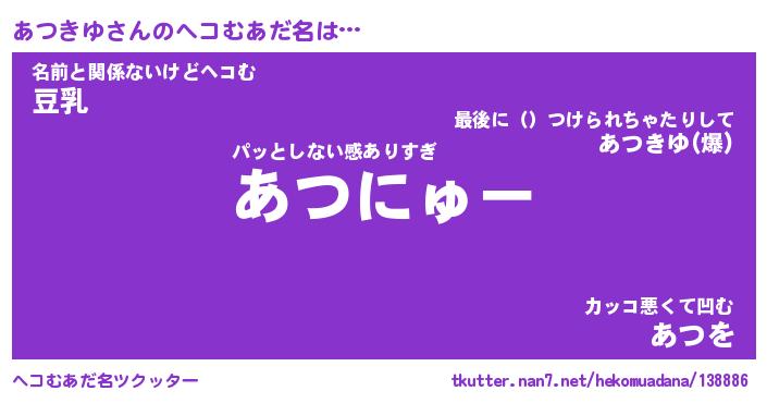 | 意味不明あだ名 | 『ペロリンあつきゆ』『永久保存あつきゆ』 |