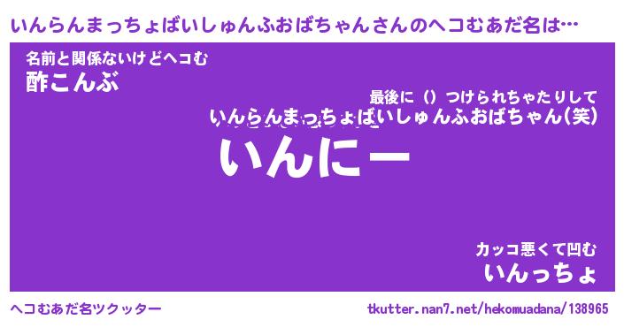 | 2回繰り返すあだ名 | 『いんいん』『いいんん』『ぬるぬる』 |