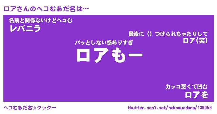 | 男性向けラノベタイトル風あだ名 | 『ロアの憂鬱』『ノーゲーム・ノーロア』 |