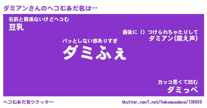 | ファンタジー風あだ名 | 『ダミフェル』『エターナルダミアンー』 |