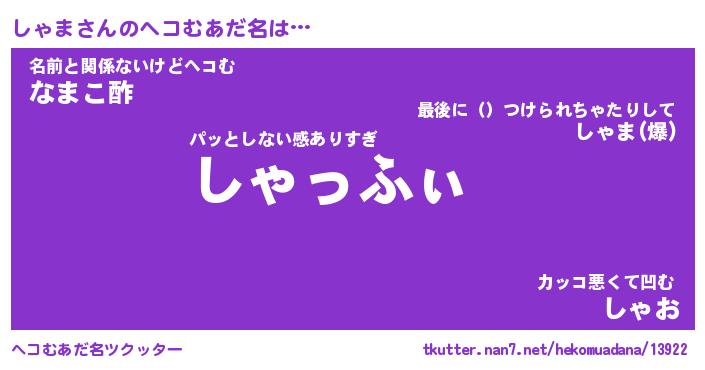 | ポケモン風あだ名 | 『シャチュウ』『シャマダネ』 |