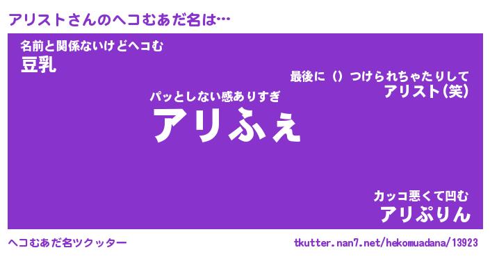 | 意味不明あだ名 | 『ペロリンアリスト』『永久保存アリスト』 |