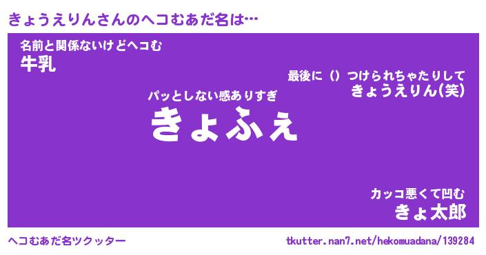 | 男性向けラノベタイトル風あだ名 | 『キョウエリンアートオンライン』 |
