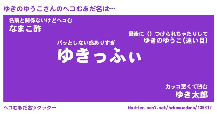 | ヒーロー風カッコイイあだ名 | 『スーパーユキノユウコ』『暗黒騎士ユキ』 |