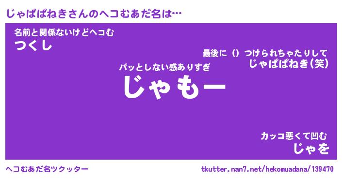 | 欧米人風あだ名 | 『マイケルじゃぱぱねき』 |