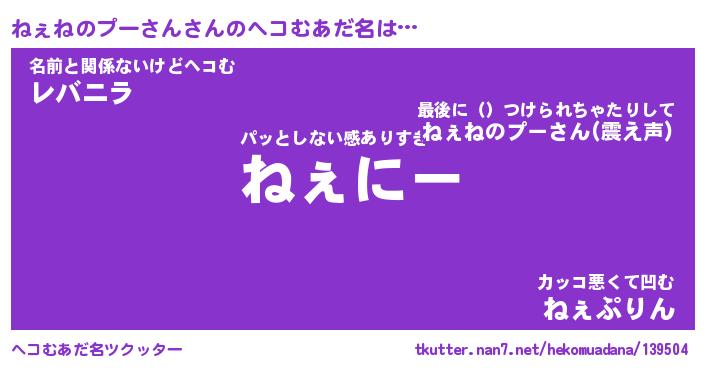 | 自動車の名前っぽいあだ名 | 『プリネェ』『ネスラー』『ネント』 |