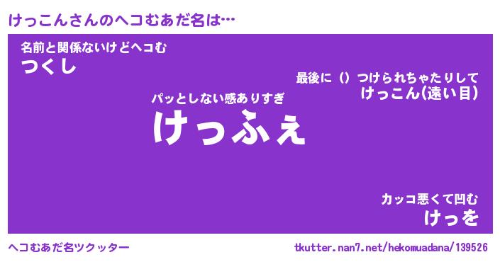 | ファンタジー風あだ名 | 『ケッフェル』『エターナルケッコンー』 |