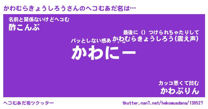 | 男性向けラノベタイトル風あだ名 | 『かわむらきょうしろうの憂鬱』 |
