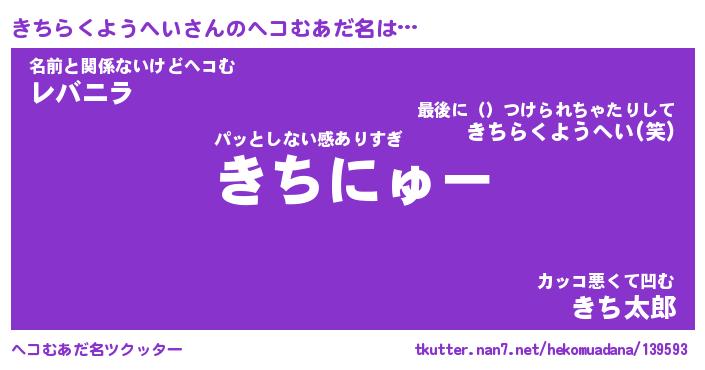 | 胡散臭い通販商品みたいなあだ名 | 『必ず成功する水晶球…その名も「きちらくようへい」』 |