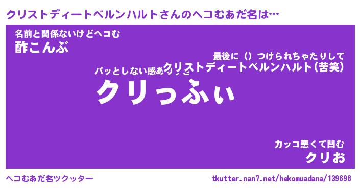 | ヒーロー風カッコイイあだ名 | 『スーパークリストディートベルンハルト』 |
