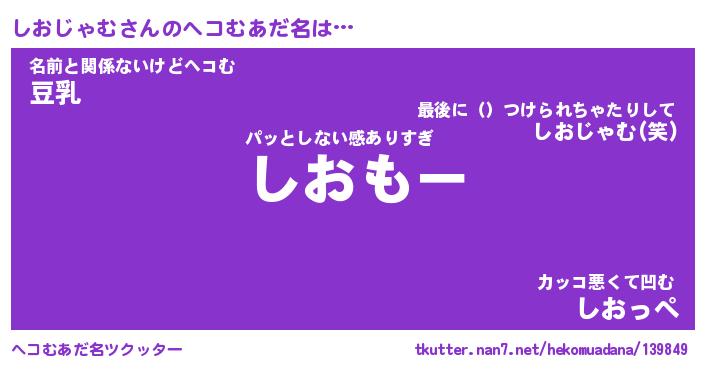 | ファンタジー風あだ名 | 『シオフェル』『エターナルシオジャムー』 |