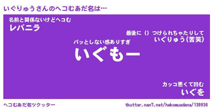 | 男性向けラノベタイトル風あだ名 | 『いぐりゅうの憂鬱』 |