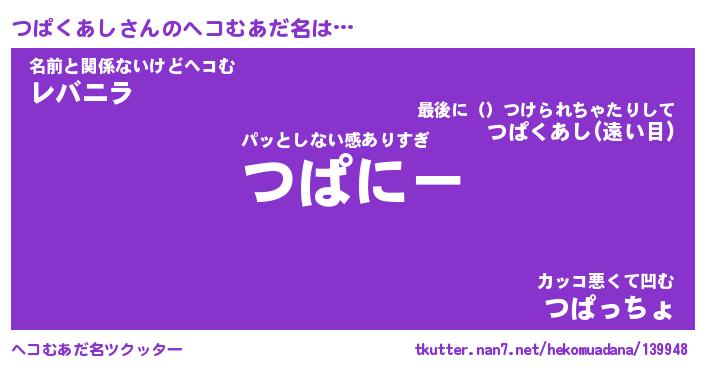 | ポケモン風あだ名 | 『ツパチュウ』『ツパクダネ』 |