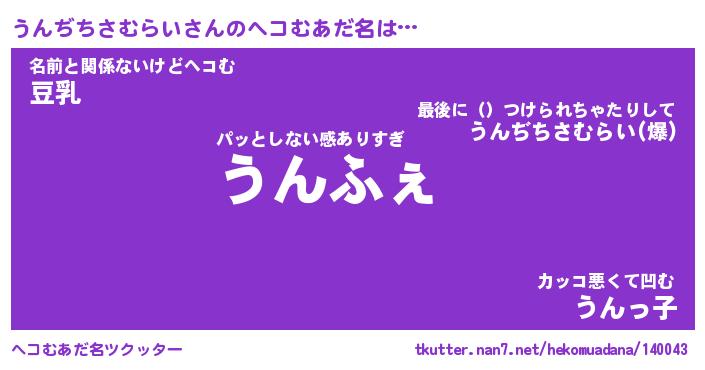| 欧米人風あだ名 | 『マイケルうんぢちさむらい』 |
