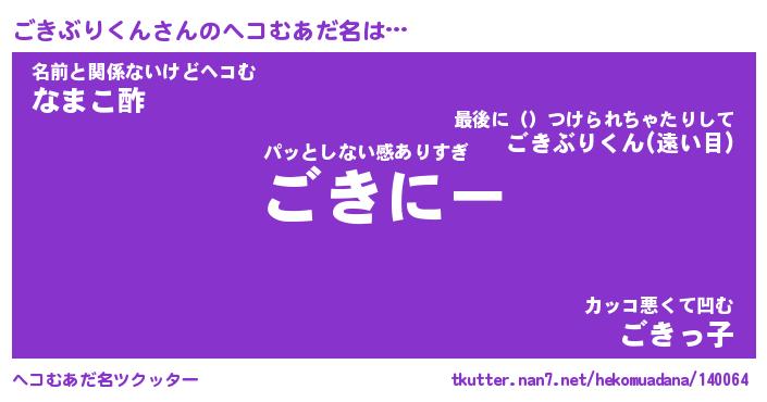 | 2回繰り返すあだ名 | 『ごきごき』『ごごきき』『かんかん』 |