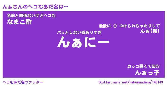 | 2回繰り返すあだ名 | 『んぁんぁ』『んんぁぁ』『にたにた』 |