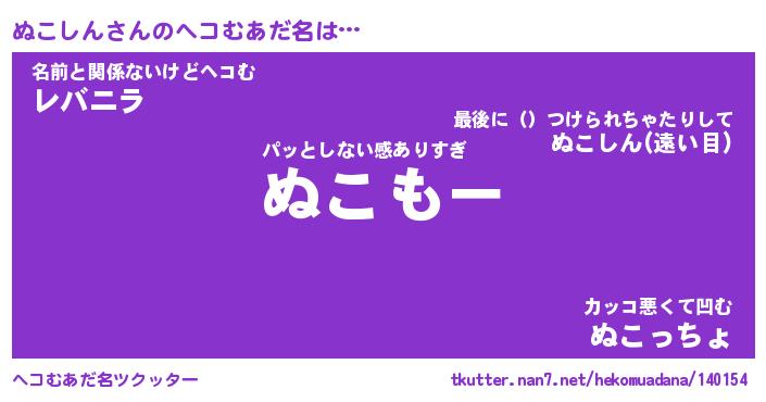 | 意味不明あだ名 | 『ペロリンぬこしん』『永久保存ぬこしん』 |