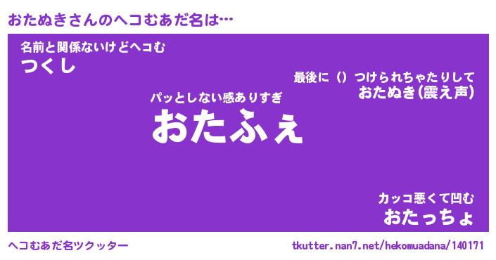 | 意味不明あだ名 | 『ペロリンおたぬき』『永久保存おたぬき』 |