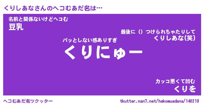 | 意味不明あだ名 | 『ペロリンくりしあな』 |