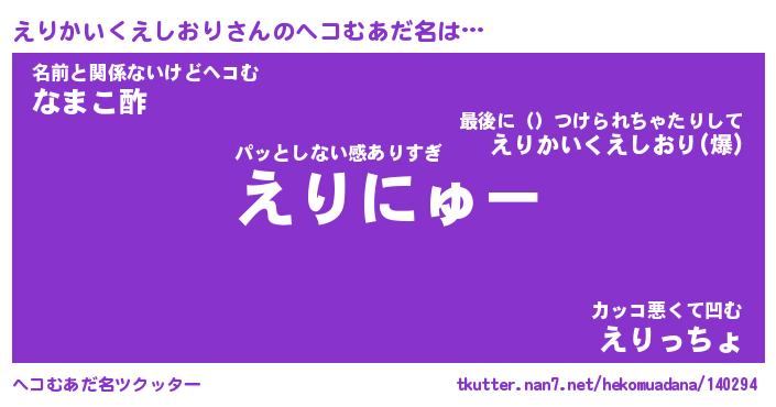 | 男性向けラノベタイトル風あだ名 | 『エリカイクエシオリアートオンライン』 |