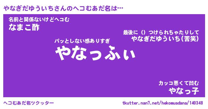 | 伝説のあだ名 | 『封印されしスナイパーやなぎだゆういち』 |