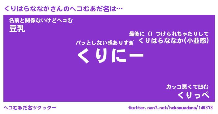 | 恥ずかしいあだ名 | 『プリティーくりはらななか』『くりちん』 |