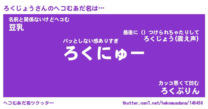 | ポケモン風あだ名 | 『ロクチュウ』『ロクジダネ』 |