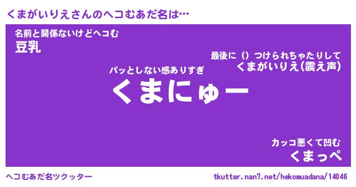 | 2回繰り返すあだ名 | 『くまくま』『くくまま』『おたおた』 |