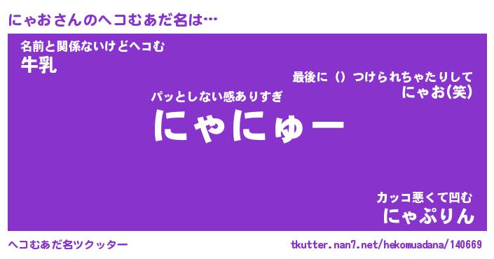 | ファンタジー風あだ名 | 『ニャフェル』『エターナルニャオー』 |