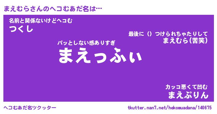 | ポケモン風あだ名 | 『マエチュウ』『マエムダネ』 |