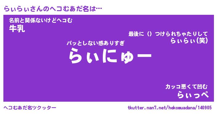 | 2回繰り返すあだ名 | 『らぃらぃ』『ららぃぃ』『ぬるぬる』 |