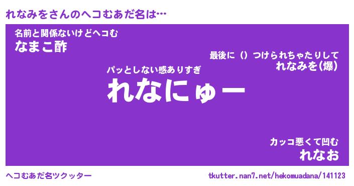 | 意味不明あだ名 | 『ペロリンれなみを』『永久保存れなみを』 |