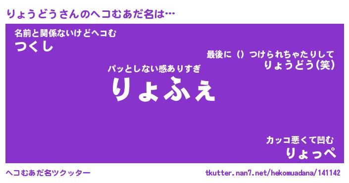 | 2回繰り返すあだ名 | 『りょりょ』『りりょょ』『ぬぷぬぷ』 |