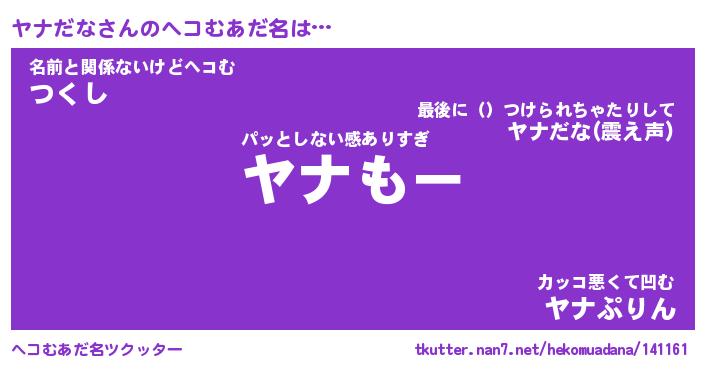 | 2回繰り返すあだ名 | 『ヤナヤナ』『ヤヤナナ』『ぬるぬる』 |