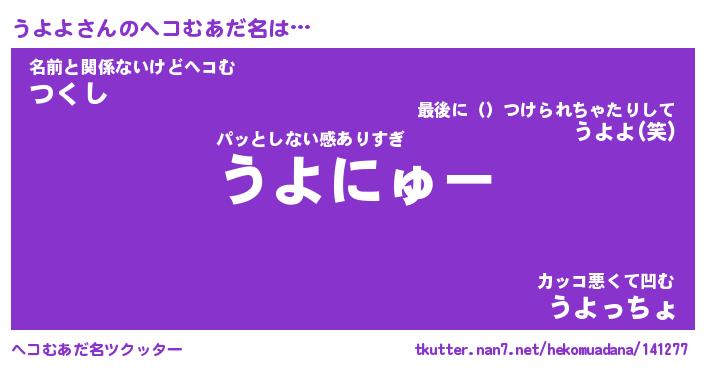 | ファンタジー風あだ名 | 『ウヨフェル』『エターナルウヨヨー』 |