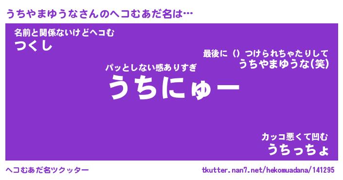 | 恥ずかしいあだ名 | 『プリティーうちやまゆうな』『うちちん』 |