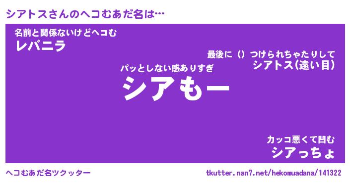 | 2回繰り返すあだ名 | 『シアシア』『シシアア』『くたくた』 |