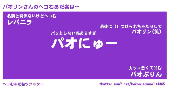 | ファンタジー風あだ名 | 『パオフェル』『エターナルパオリンー』 |