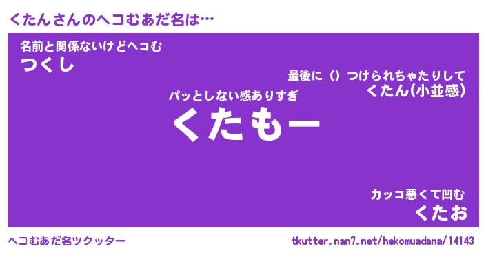 | 意味不明あだ名 | 『ペロリンくたん』『くたんフォーエバー』 |