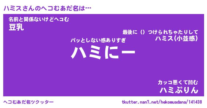 | 意味不明あだ名 | 『ペロリンハミス』『ハミスフォーエバー』 |