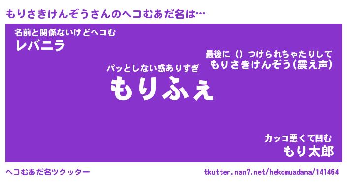 | 男性向けラノベタイトル風あだ名 | 『もりさきけんぞうの憂鬱』 |