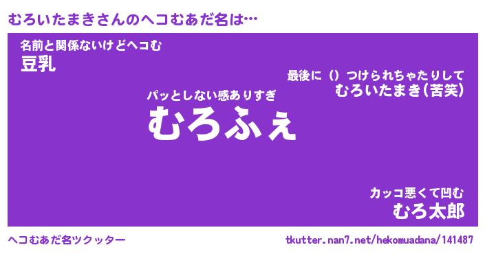 | 自動車の名前っぽいあだ名 | 『ムロティマ』『ムクア』『デミム』 |