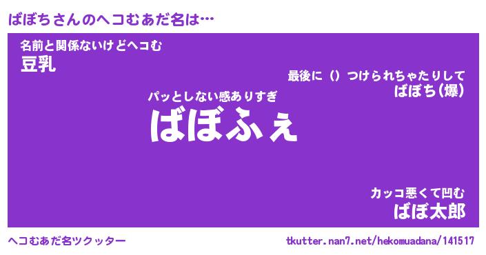 | 意味不明あだ名 | 『ペロリンばぼち』『ばぼちフォーエバー』 |