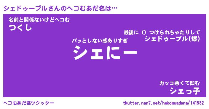 | 2回繰り返すあだ名 | 『シェシェ』『シシェェ』『ぷるぷる』 |