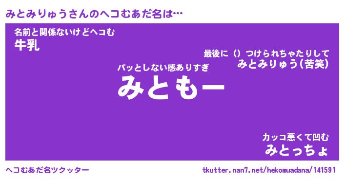 | 男性向けラノベタイトル風あだ名 | 『みとみりゅうの憂鬱』 |