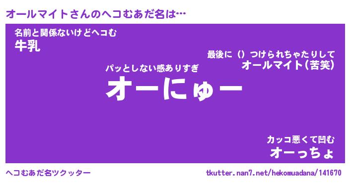 | 恥ずかしいあだ名 | 『プリティーオールマイト』『オーっちょ』 |