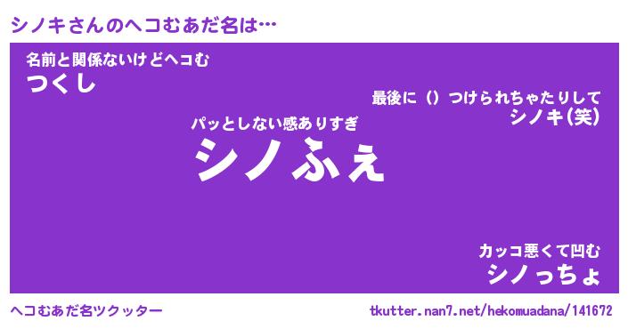 | 男性向けラノベタイトル風あだ名 | 『シノキの憂鬱』 |