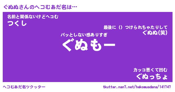 | ヒーロー風カッコイイあだ名 | 『スーパーグヌヌ』『ウルトラぐぬぬマン』 |